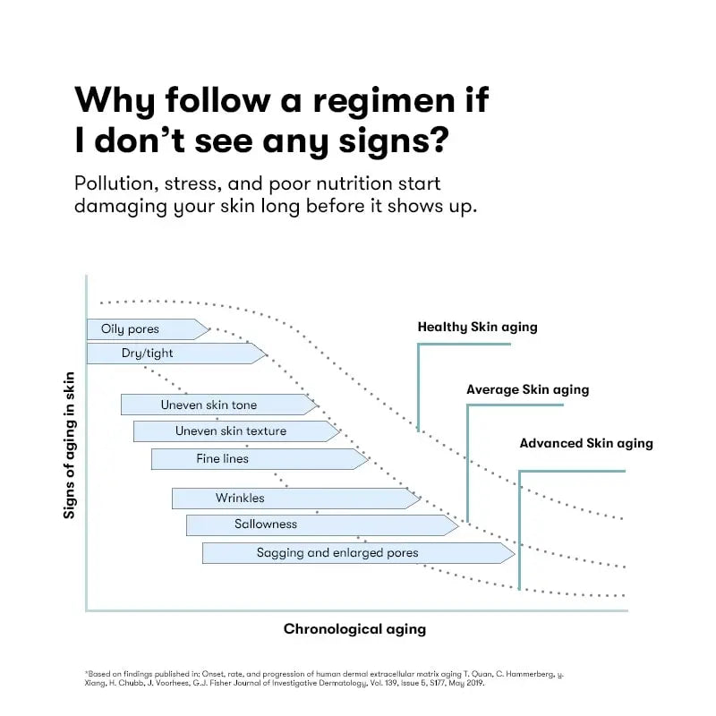 Since your skin is shaped by its profile—oily, combination-to-oily skin^, and dry, combination-to-dry skin*—and by the journey it goes through as life evolves, visible signs of skin aging need to be addressed at the right time with products that help reduce visible signs for your age, tuned to your skin, and timed to your routine.